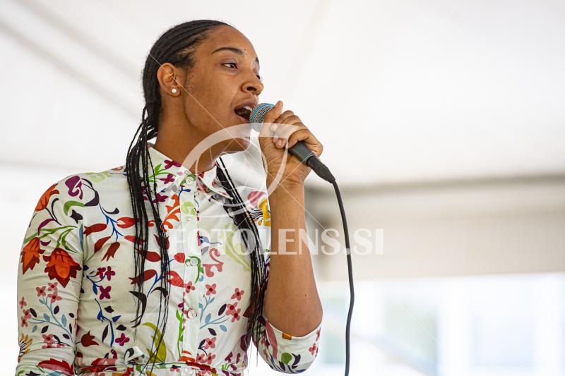 Slavnostna seja občinskega sveta s podelitvijo priznanj ob 26. občinskem prazniku in dnevu združitve prekmurskih Slovencev z matičnim narodom ter Ulica okusov kulinaričnih dobrot krajevnih skupnosti Občine Beltinci. Prireditveni prostor pred občinsko stavbo, Beltinci, 14. 8. 2022. Foto: Aleš Cipot/fotolens.si.